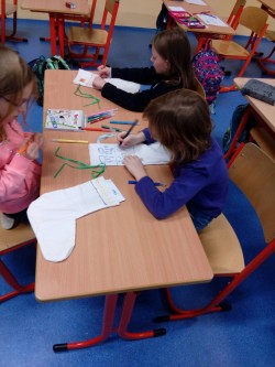 1. 12. 2019 - Mikulášská punčocha - vlastní návrhy na textilní punčochu - Čteme z knihy Lidové tradice - Svatá Kateřina, Svatý Ondřej - Zimní motiv - zažehlovací korálky 1 / 12 / 2019 KV