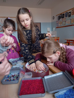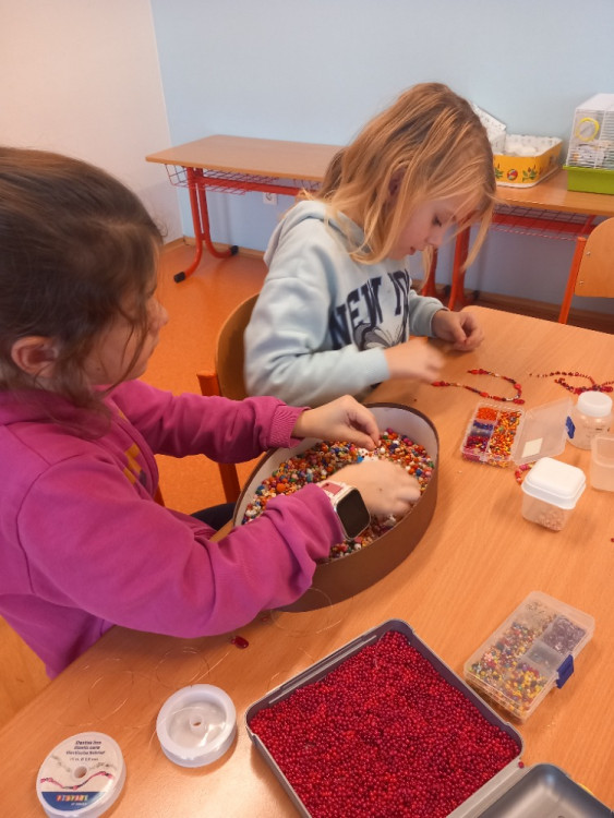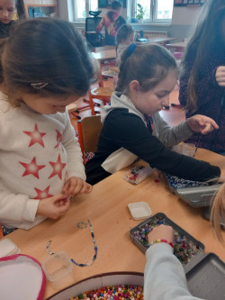 23. 1. 2025 Navlékáme korálky a tvoříme náramky a náhrdelníky, děvčata i chlapci. Procvičujeme jemnou motoriku a navrhujeme tak pěknou bižuterii nejen pro sebe, ale i pro svoje blízké. 23 / 1 / 2025 BJ