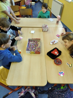 15. 2. 2024 2. oddělení ŠD - zažehlujeme korálky, malujeme na textil, vymačkáváme keramickou misku, navrhujeme karnevalové masky 22 / 2 / 2024 KV