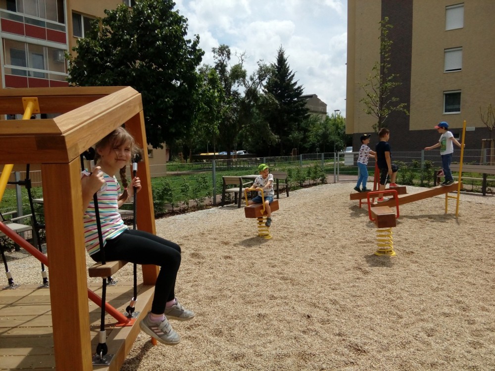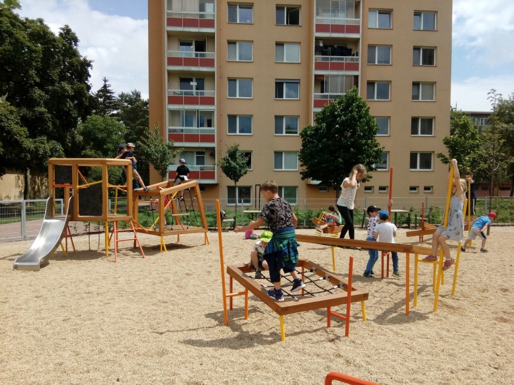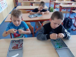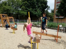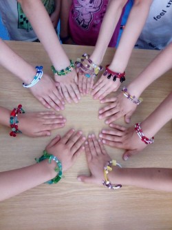 odpolední hry na městském hřišti, navlékání korálek - náramek