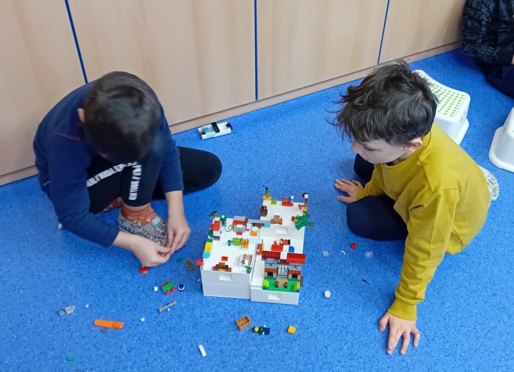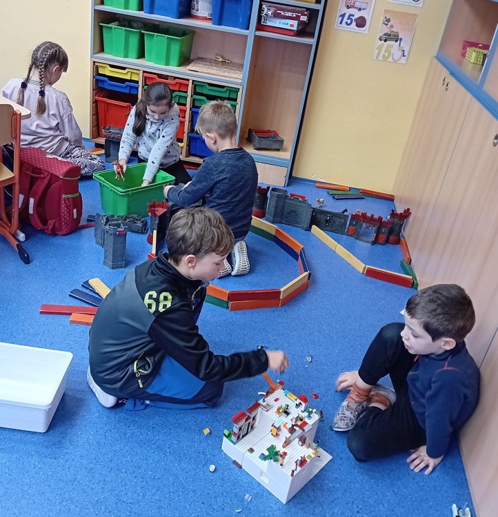 15. 1. 2024 ŠD 2.oddělení - odpoledne si pohrajeme na hřišti Benešova, výtvarně tvoříme z látky, volné hry se stavebnicí Lego, hrady, dřevěné kostky..... 15 / 1 / 2024 KV
