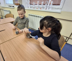 27. 11. 2025 Společně tvoříme ozdobnou šišku, kterou si můžeme pověsit na vánoční stromeček.🙂 27 / 11 / 2025 SkS