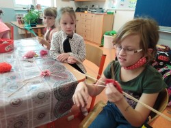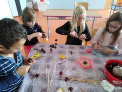 Kromě klasických zvířecích figurek jsme vyráběli pomocí vrtáčků, špejlí a vlny