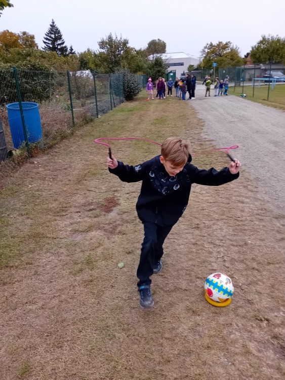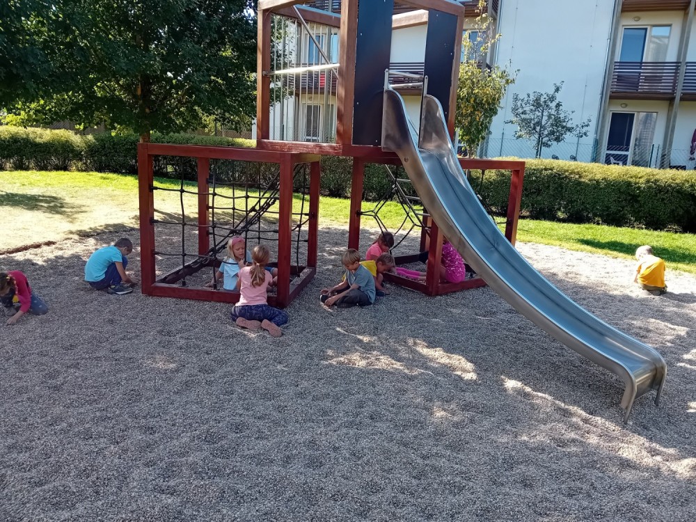 ŠD pobyt venku - herní prvky, skáčeme gumu, soutěžíme