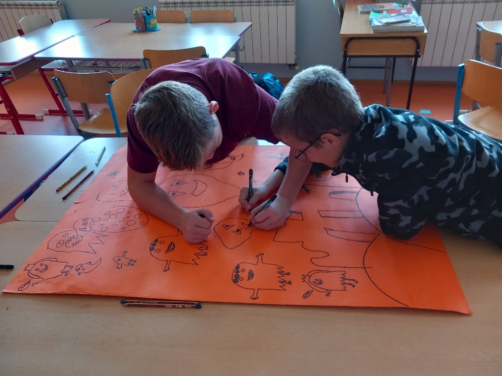 plakát dokreslujeme duchy podle vlastní fantazie. Chválíme děti za pěknou práci :-)