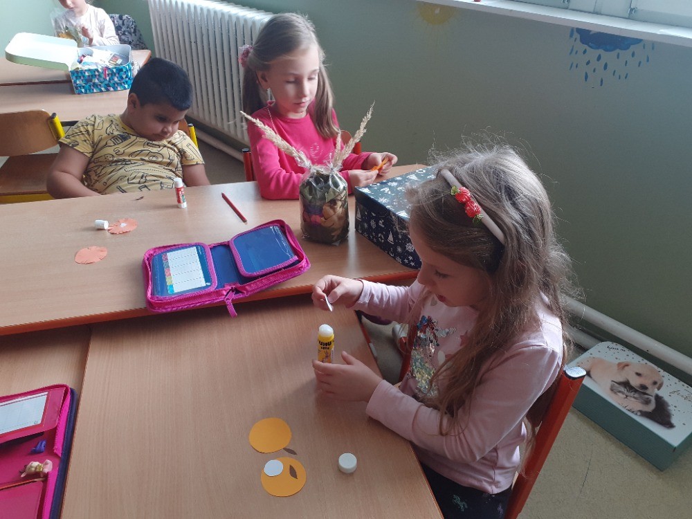 19. 10. 2022 Z listů a celofánových sáčků jsme tvořili sovičky, které nám teď zdobí třídu. J. Myslíková 19 / 10 / 2022 BJ