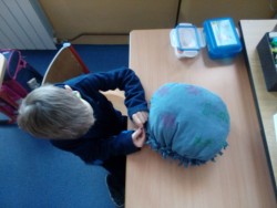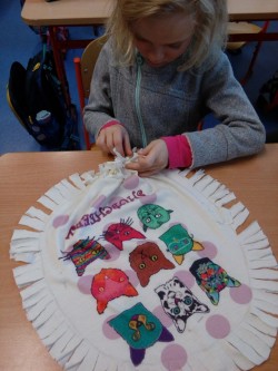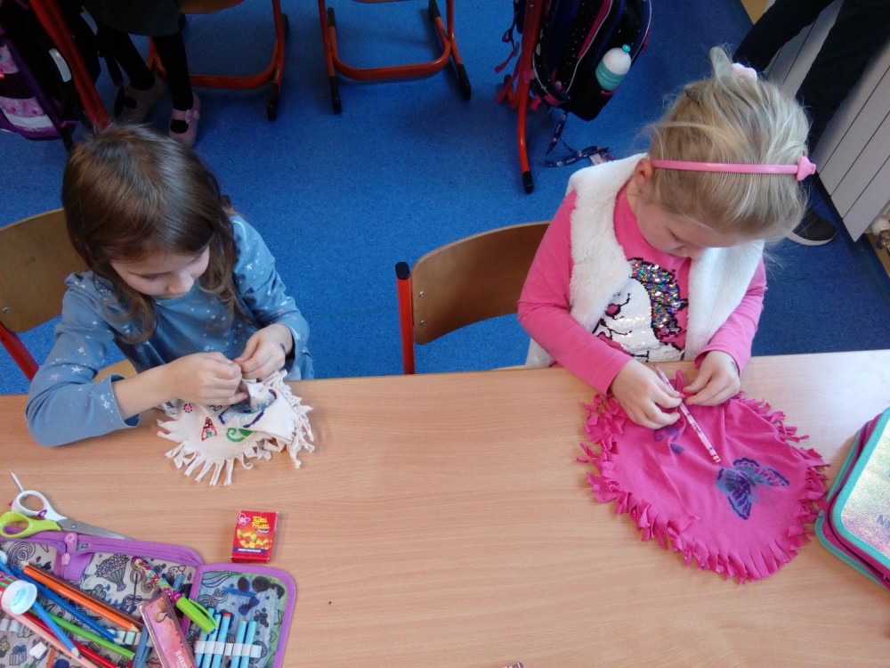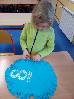 17. 1. 2022 2.oddělení ŠD - recyklujeme tričko - polštářek bez šití, dělat uzlíky je někdy velký ? 17 / 1 / 2022 KV