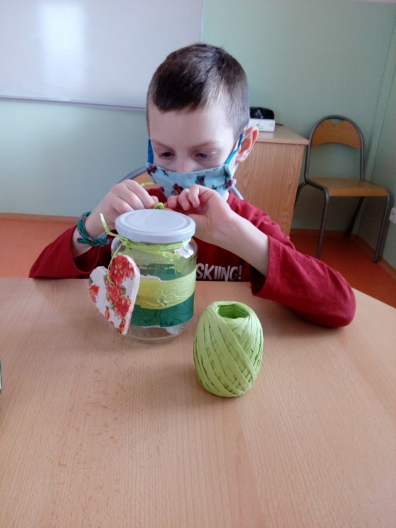 5. 2. 2021 Předškoláci tvoří zdobenou sklenici. Vyřezáváme balsové srdíčko, kašírujeme barevné ubrousky, zdobíme sklenici. 7 / 2 / 2021 KV