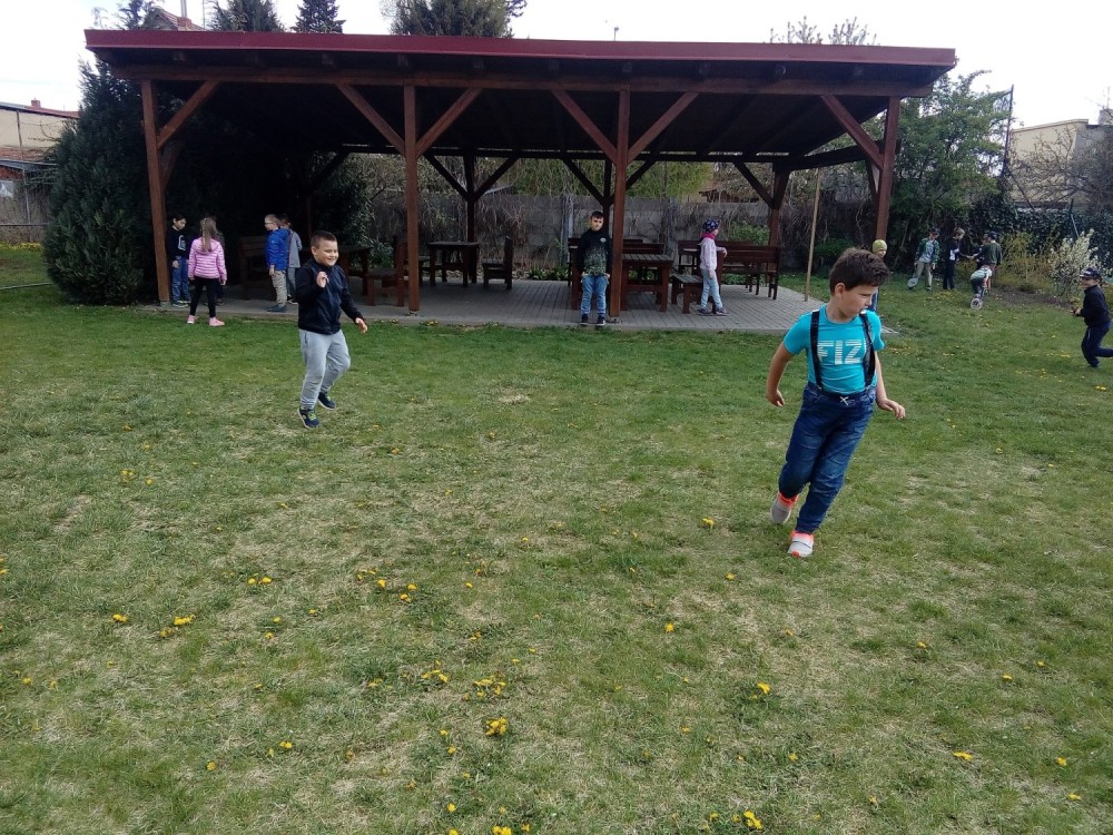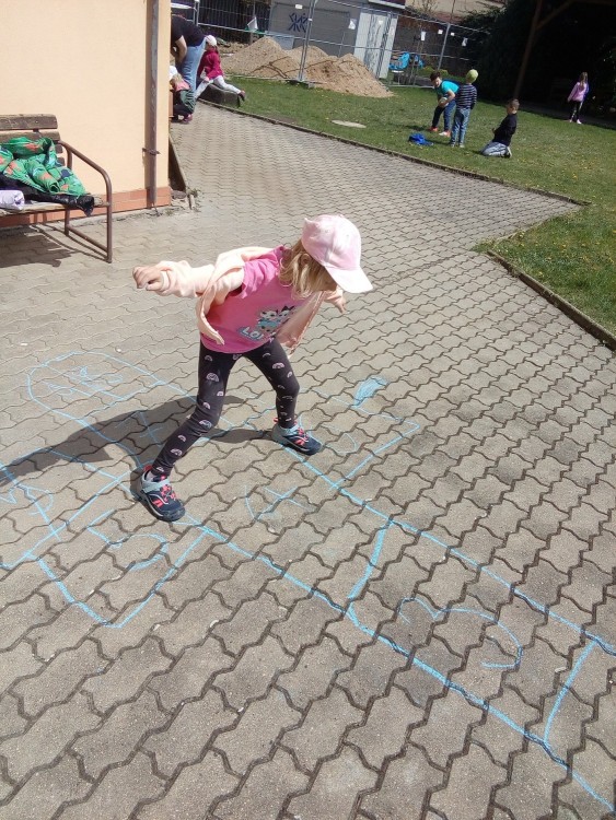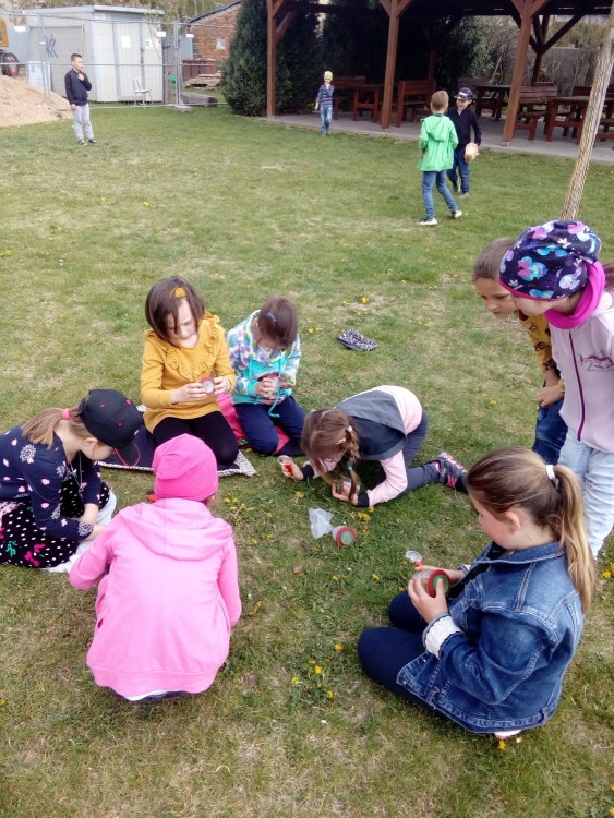 Pozorujeme mravence na školním hřišti, hrajeme hry.
