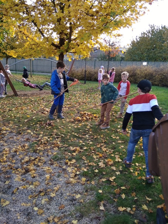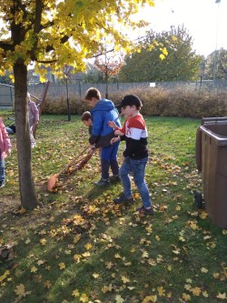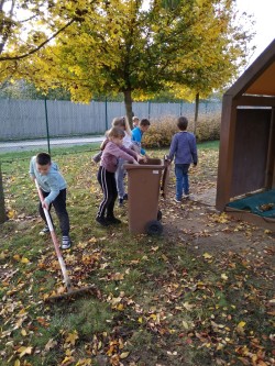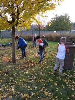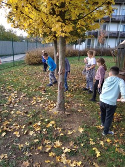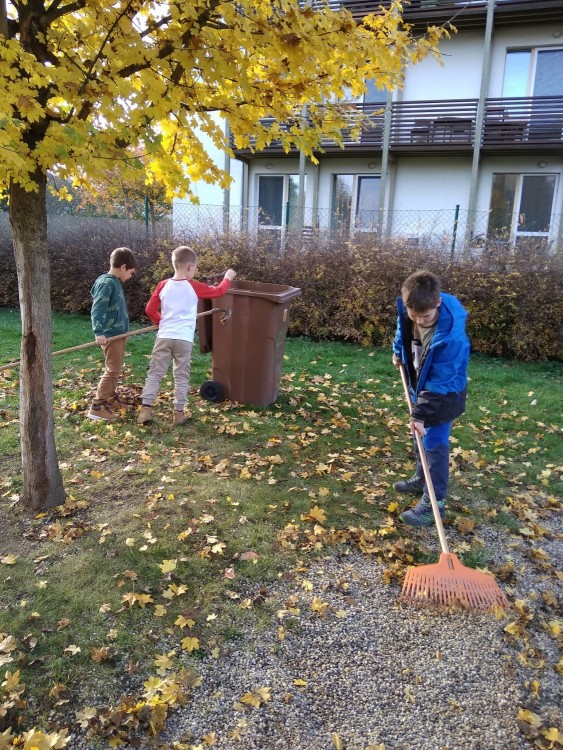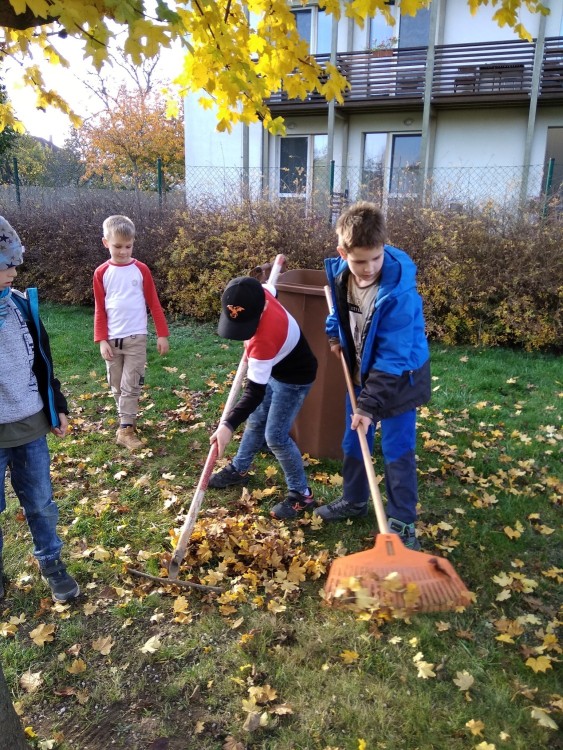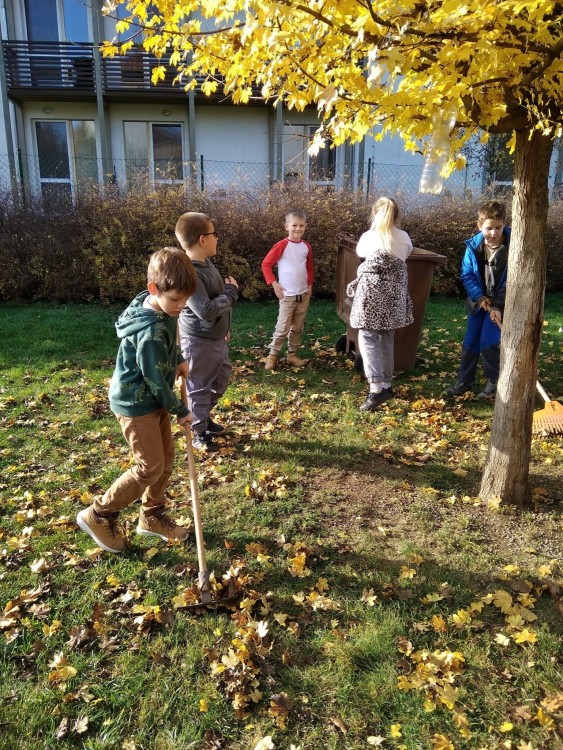 Práce na školní zahradě - žáci z 1., 2., 4. oddělení.