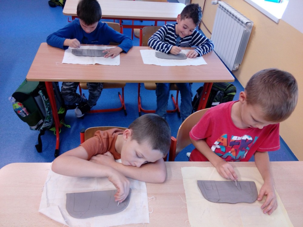 ŠD 2.oddělení - práce s keramickou hlínou, malujeme temperovou barvou