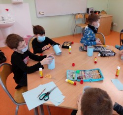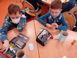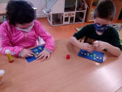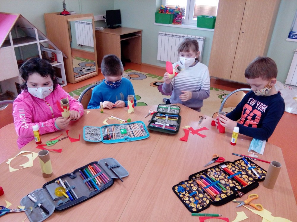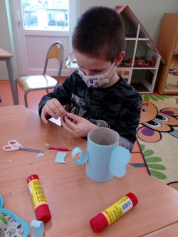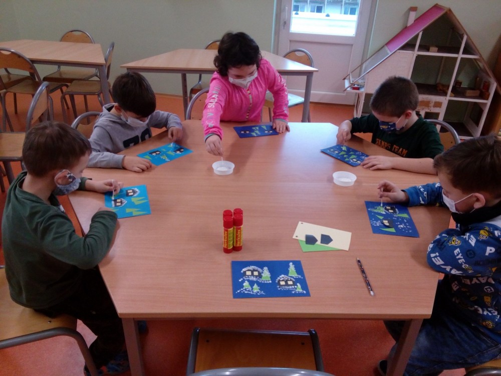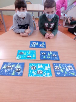 27. 1. 2021 Poslední týden v lednu se nám podařilo vyrobit pěkné výtvarné výrobky. - zasněžená krajina - barevný papír, lepidlo, tempera - zvířátka z papírové ruličky veverka, slon 27 / 1 / 2021 KV