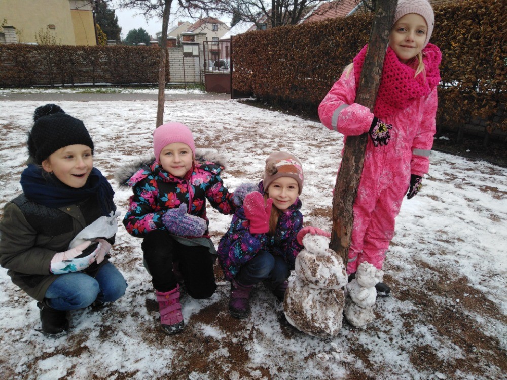 hráli vybíjenou, na honěnou a v pátek 13. jsme si užili spolu s dětmi ze 2. B sněhové nadílky :-)