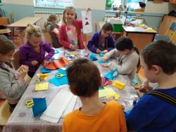 Tvořili jsme vánoční přání pro rodiče a soby ze skleniček, a přitom poslouchali písničky z Youtube.