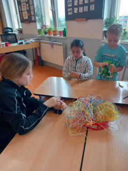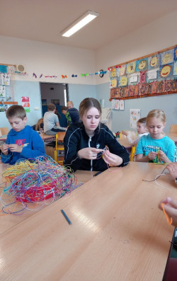 22. 5. 2024 Ani v ranní družině nezahálíme, stavíme si ze Sevy, vykreslujeme omalovánky, hrajeme stolní hry a momentálně se učíme jeden od druhého plést přívěsky z bužírek. Zkrátka se tu rádi potkáváme a čas před vyučováním smysluplně využijeme. 22 / 5 / 2024 BJ