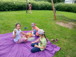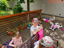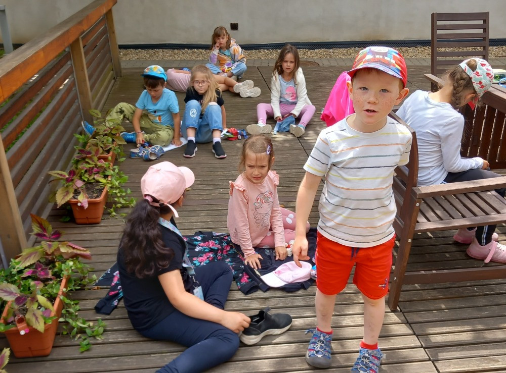 5. 6. 2024 Čteme si další kapitolu z knihy Krysáci, luštíme křížovku ke Dni dětí a hrajeme Krvavého dědka, kterého nás naučila studentka Simona. Pozorujeme pulce u jezírka a na dece pleteme bužírky nebo hrajeme Uno. 5 / 6 / 2024 BJ