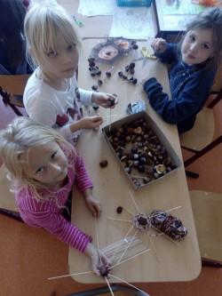 V říjnu jsme tvořili zvířátka z kaštanů, draky z přírodnin a pavučiny