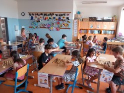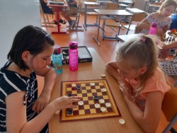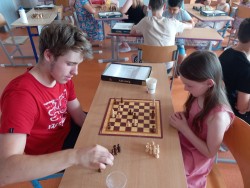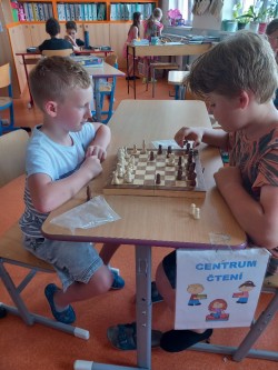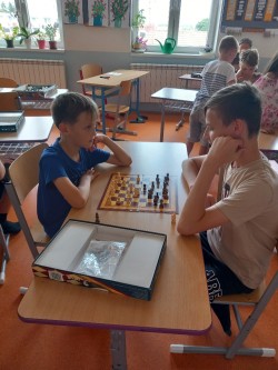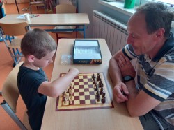 K šachovému klání mezi mladšími a staršími dětmi nás inspiroval jarní šachový turnaj, který proběhl pouze mezi žáky na druhém stupni. Proto jsme oslovili paní učitelku Hájkovou a ta k nám v rámci odpoledního vyučování vyslala s panem asistentem Rosickým pět žáků deváté a osmé třídy. A tak nejen třeťáci, ale také druháci a nulťáci poměřili síly se Sebastianem, Míšou, Tondou, Michalem a Matějem. Občas se nám dařilo a vyhráli jsme :-) Chtěli bychom v tomto klání pokračovat i v dalším školním roce v rámci programu školního parlamentu, abychom se mohli od těch starších více naučit a nebo se jenom tak setkat, nejen při šachové partii :-)