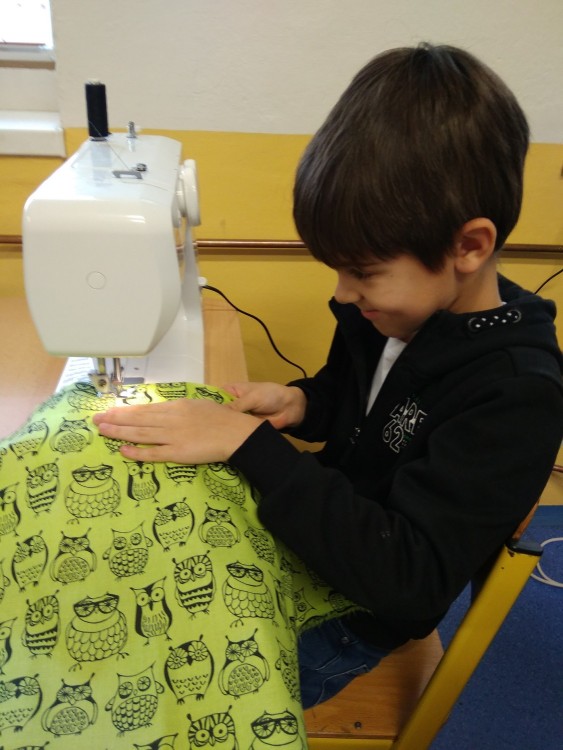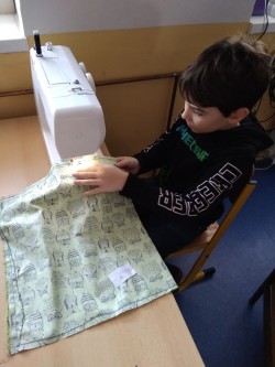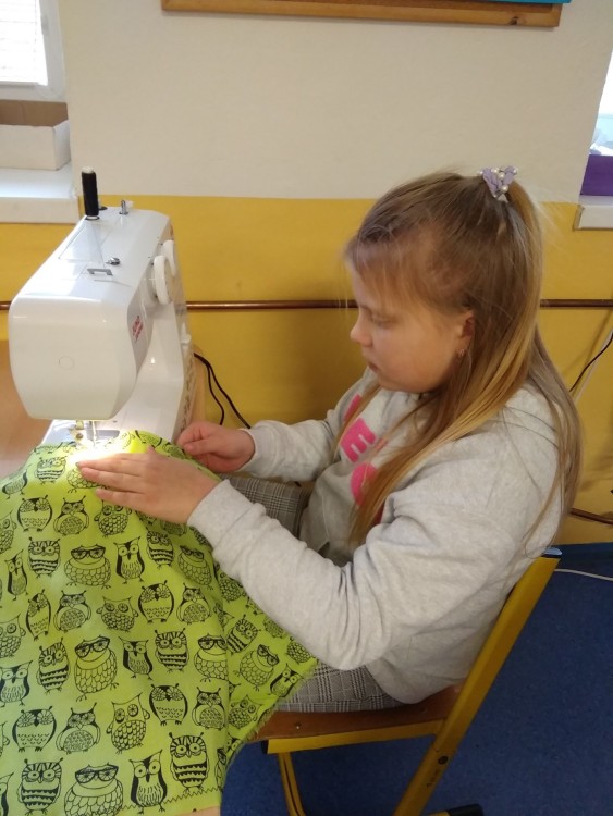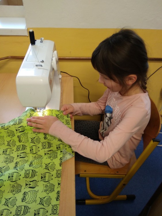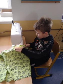 Šití pytlíku na papuče 2.oddělení ŠD.