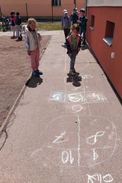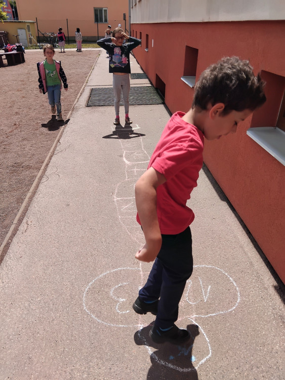 Skákání panáka je dětská hra. Úkolem je skákat přes políčka v daném pořadí bez přešlapu.