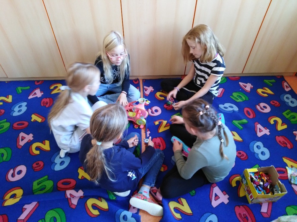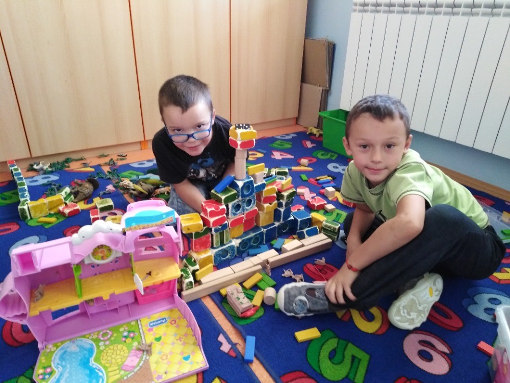 hrajeme pexeso, šachy, Uno, Cink a stavíme si z kostek, Lega a Sevy. Venku sportujeme,