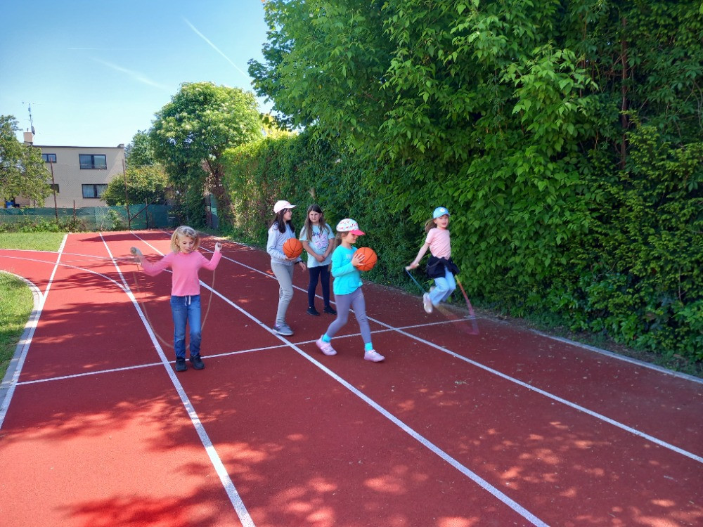 K naší velké radosti se nám vrátilo slunečné počasí. A tak si pravidelně chodíme zasportovat na naše oblíbené hřiště u budovy Benešova, zahrát si malou kopanou, na honěnou Zombie, učit se skákat přes švihadlo a driblovat basketbalovým míčem. Sport nás moc baví a jsme rádi, že tu můžeme být :-)