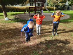 20. 10. 2025 Pěkné podzimní počasí jsme využili k venkovním sportovním aktivitám. Například jsme procvičovali házení a chytání míče, seznámili se s ringem a trénovali skok přes švihadlo. 30 / 11 / 2025 HM