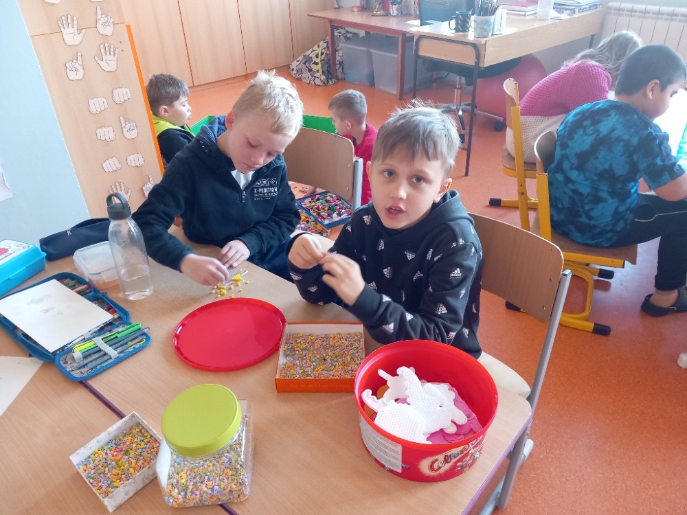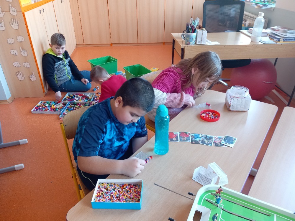 17. 1. 2024 I v mrazivém počasí rádi chodíme ven a sportujeme na hřišti Benešova. Pustili jsme se do tvoření barevných podložek ze zažehlovacích korálků a procvičujeme tak jemnou motoriku. 17 / 1 / 2024 BJ