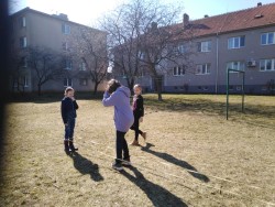 25. 3. 2022 Učíme se skákat přes gumu, házet a chytat ringo kroužky. Stavíme skrýše pro skřítky na Plácku. Hrajeme si na honěnou a kreslíme si na hřišti Fino. 25 / 3 / 2022 BJ