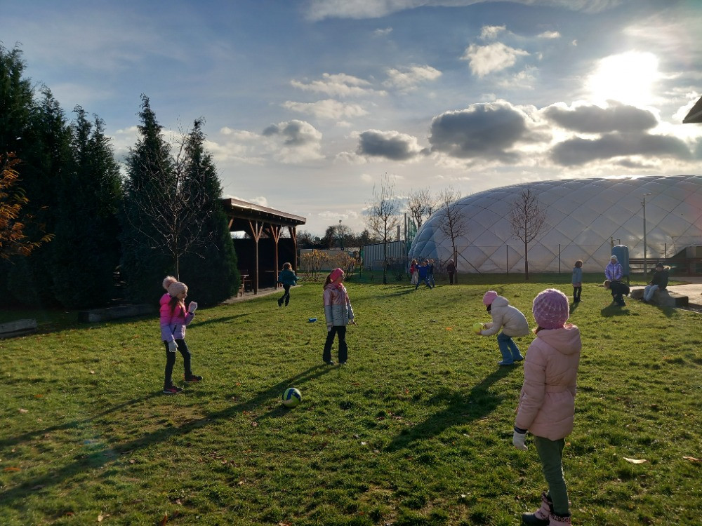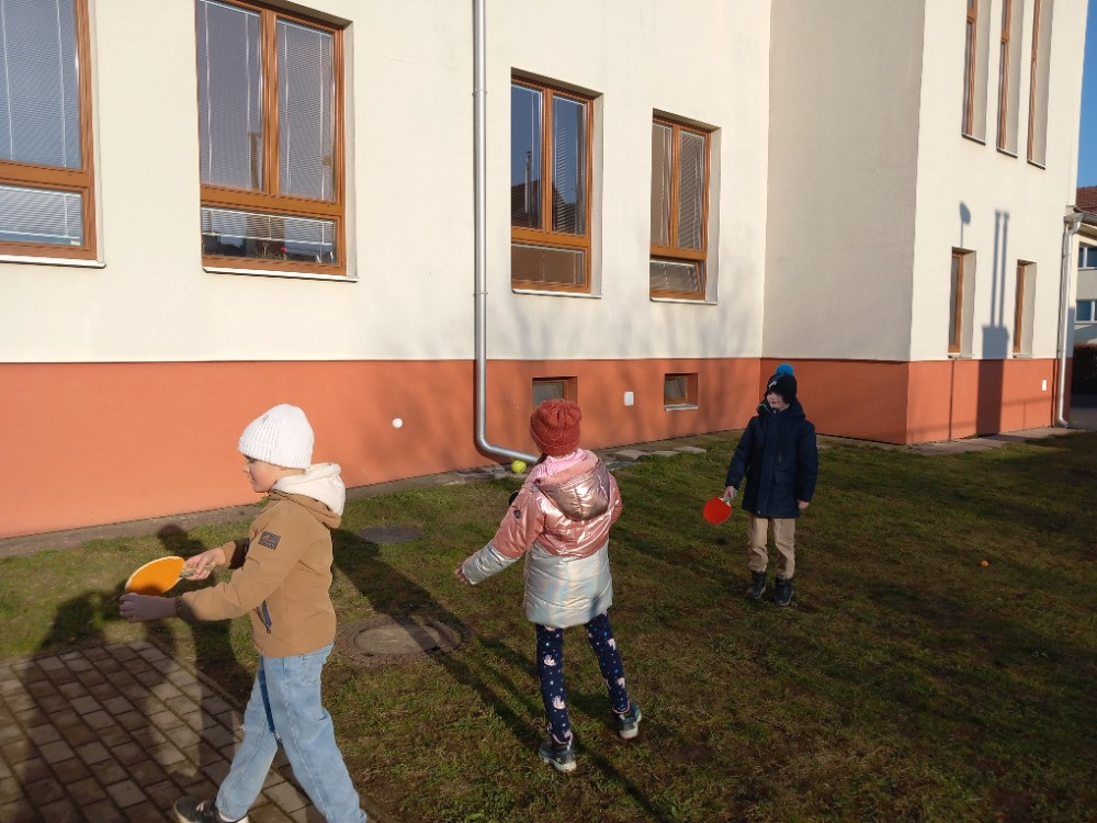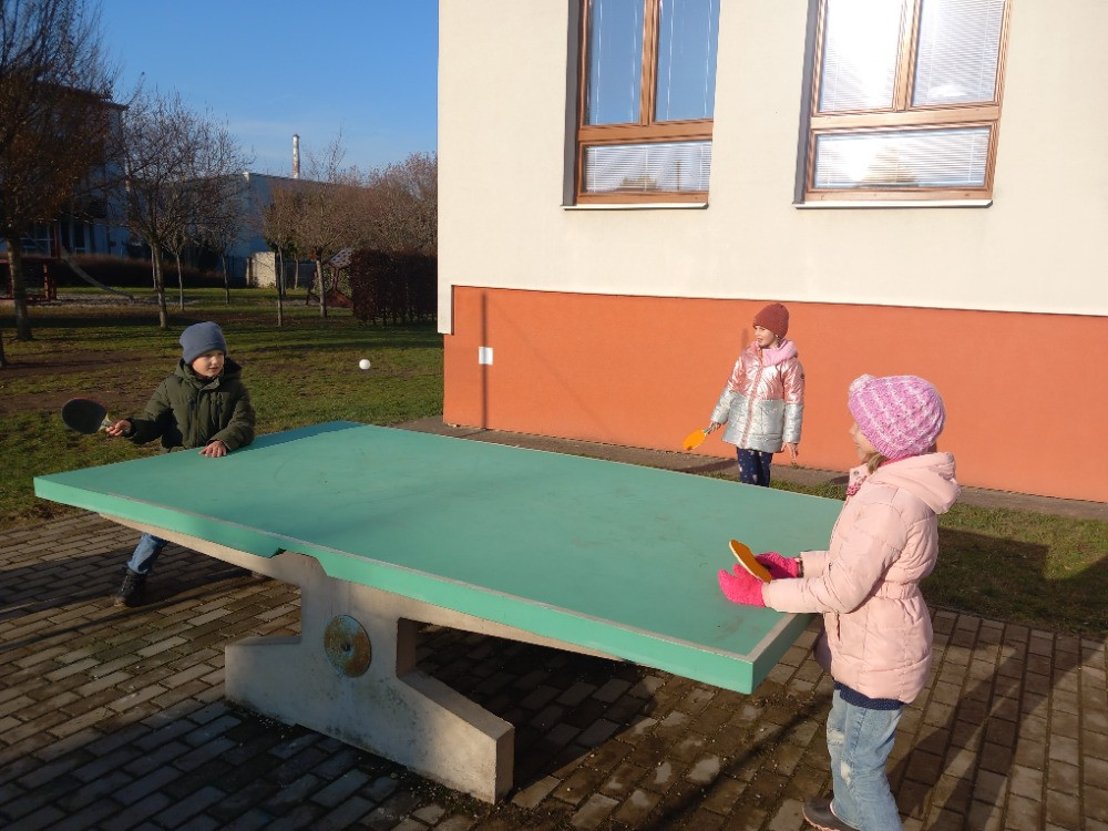 1. 12. 2025 Každý den rádi sportujeme, za dobrého počasí venku, na zahradě školy hrajeme ping pong, na plácku u altánu malou kopanou, na honěnou v nafukovací hale a občas si zacvičíme na workoutovém hřišti. 1 / 12 / 2025 BJ