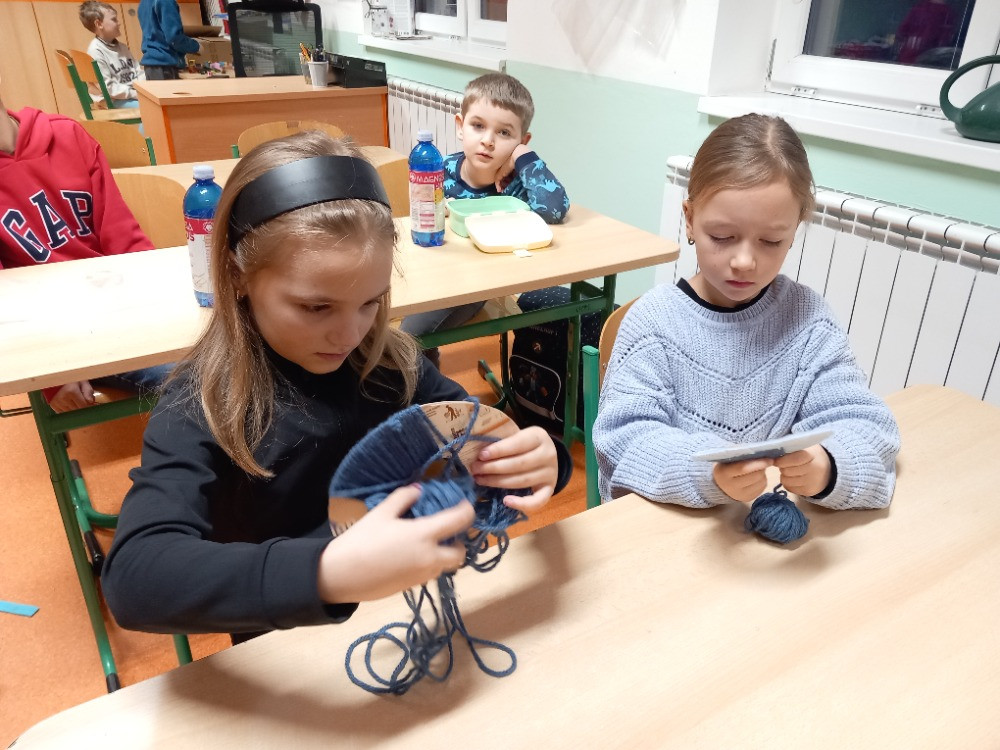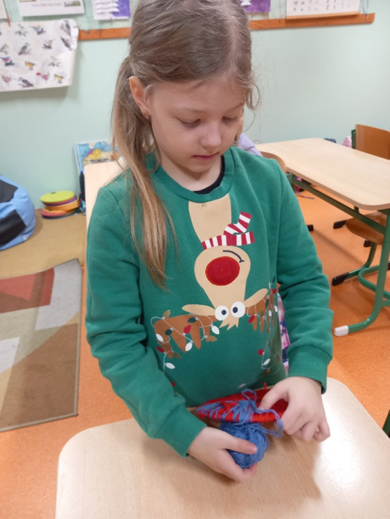 22. 1. 2026 Namotáváme vlnu na kulatou šablonu, učíme se vázat uzlíky a procvičujeme tak jemnou motoriku. Pomáháme si a máme radost, že jsme se naučili něco nového. 22 / 1 / 2026 BJ