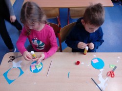 Výroba zimní krajinky na CD, vrtáme si dírku na pověšení.