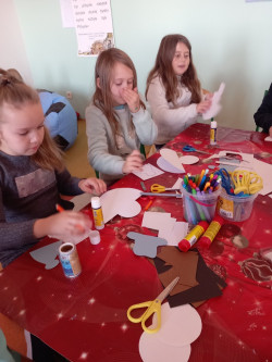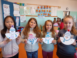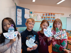 1. 12. 2025 V ranní družině tvoříme z bílého kartonu strašidla a sněhuláky. Tvoření nás opět velmi bavilo a dařilo se nám. 1 / 12 / 2025 BJ