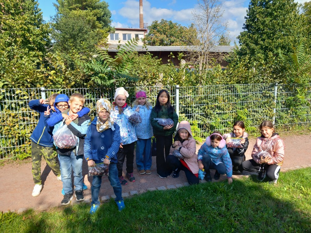 Začátkem října jsme si posbírali na "našem" místě kaštany a tvořili jsme z nich zvířátka a pavučiny. Z nasbíraných listí javoru vyrábíme kytice.
