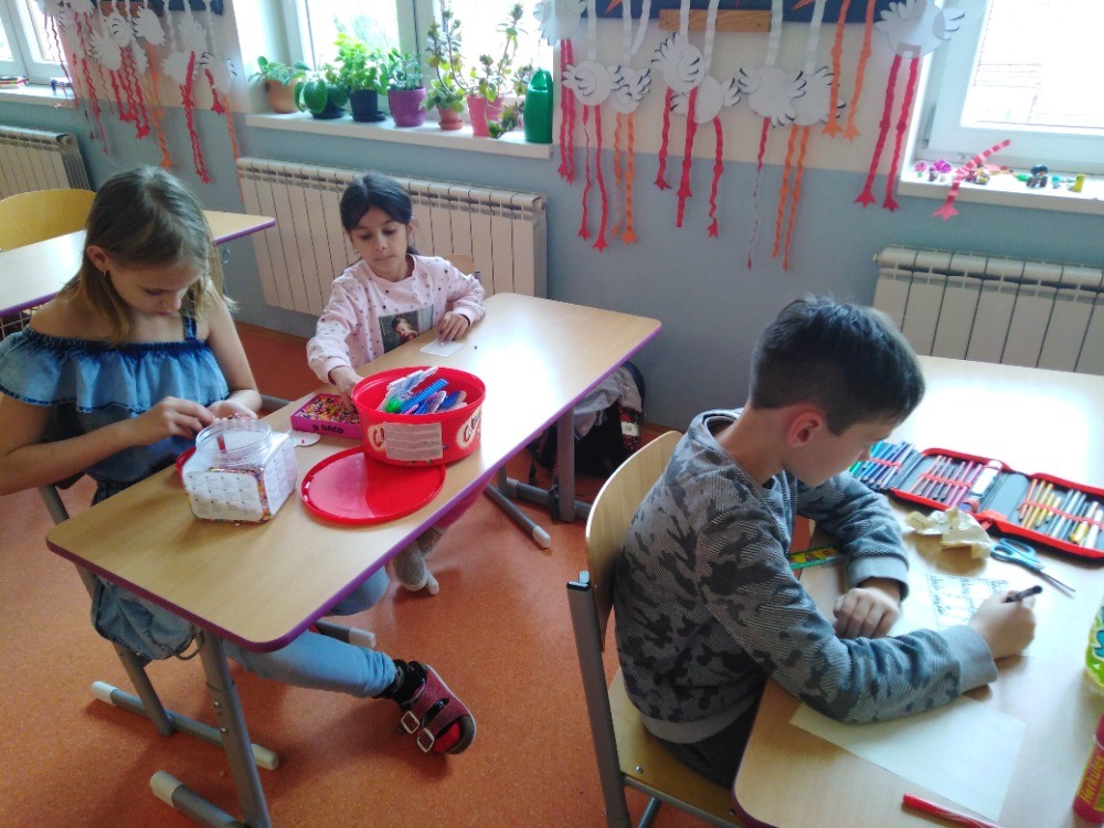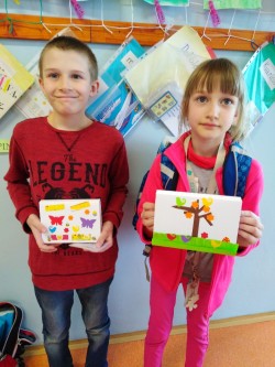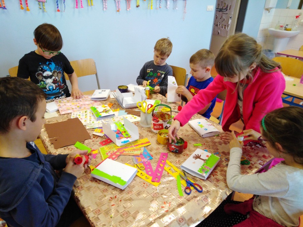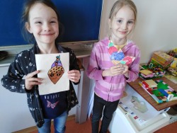 i obrázky. Také jsme si zdobili různými vzory z barevného papíru bílé obálky