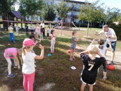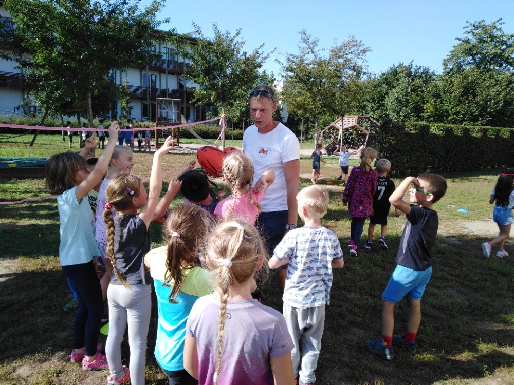 her. Učili jsme se střílet z luku, zahráli jsme si florbal, dětské rugby, přehazovanou, soutěžili
