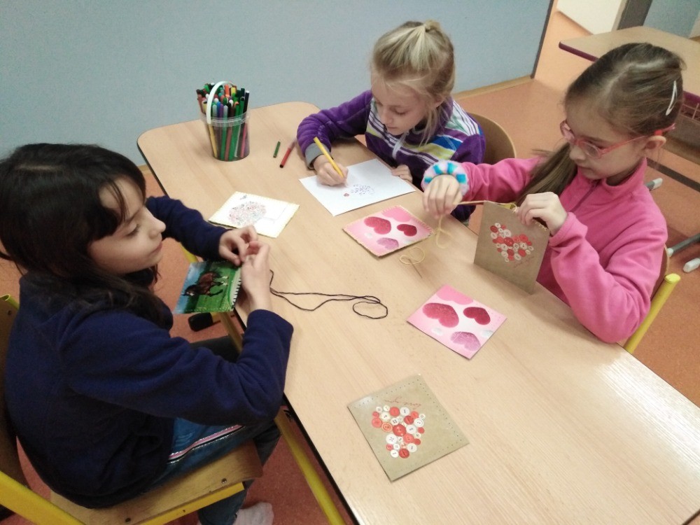 poprat o míč, o první ránu ;-) Nadále pokračujeme v šití krabiček z pohlednic,
