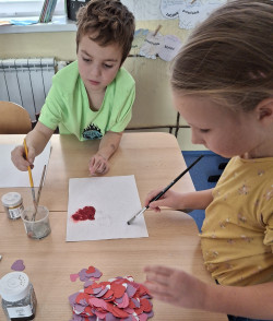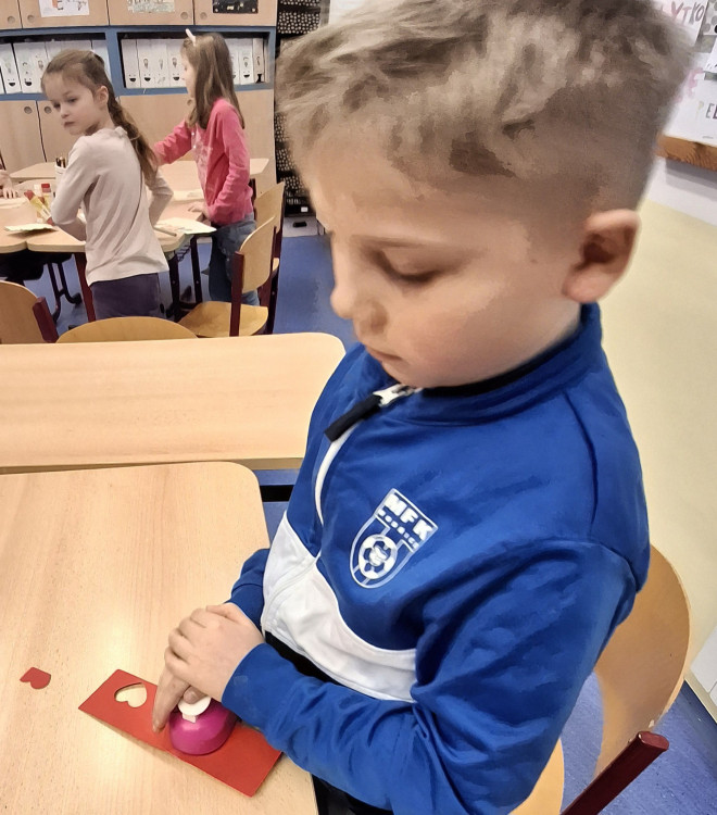 S dětmi jsme tvořili valentýnskou záložku do knihy pro někoho, koho máme moc rádi. Tvary srdce, která jsou v záložce jsme vytvořili pomocí raznice, některá z nich natřeli lepidlem a posypali třpytkami. Hotová srdce se zalaminovala, nastříhala, vrchní část záložky se ozdobila stuhou nebo provázkem a doplnila dřevěnými korálky.