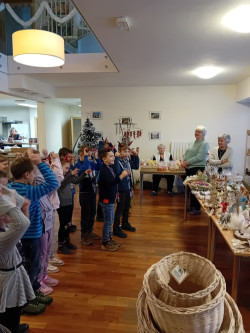 Návštěva bytového domu 2.oddělení. Žáci na uvítanou přednesli dvě básničky, které se naučili s paní učitelkou Janou Šenkýřovou 2B. Ozdobili si vánoční sádrový odlitek, radost měli z nákupu vánočních dárečků, ozdob a malého občerstvení. Děkujeme za návštěvu.