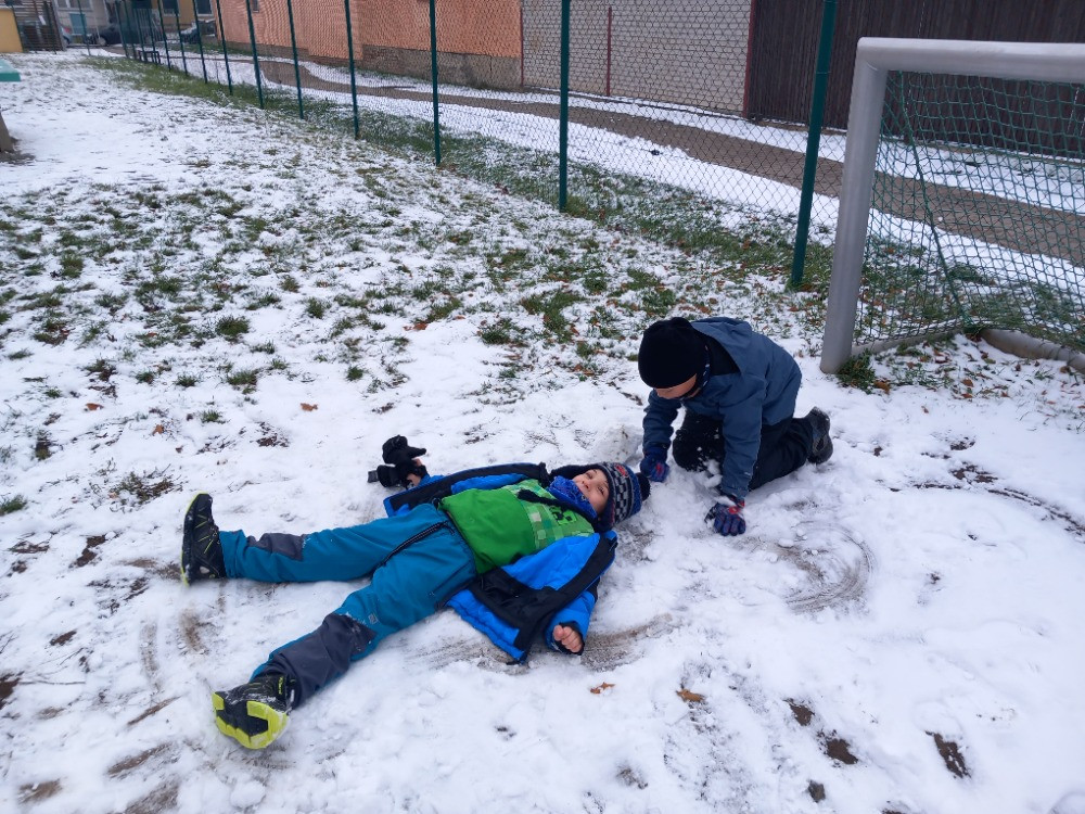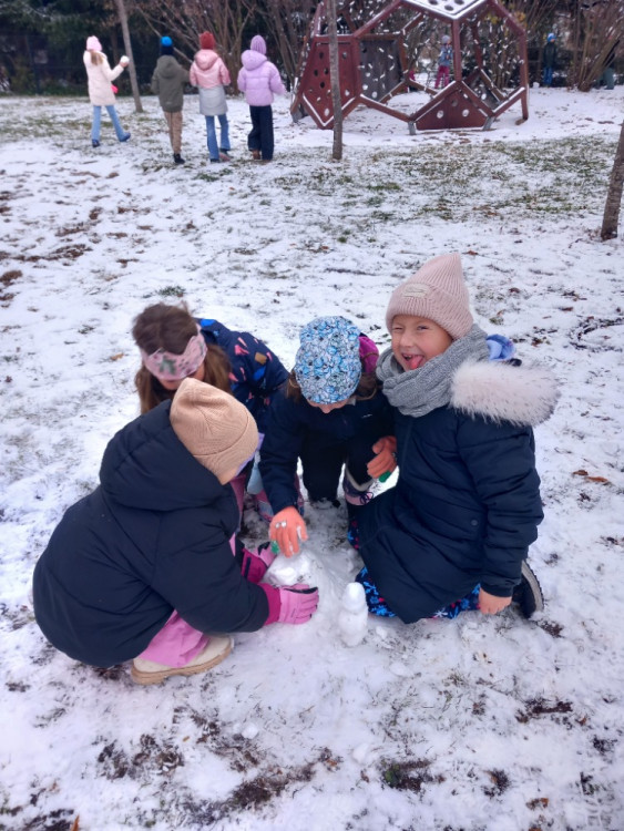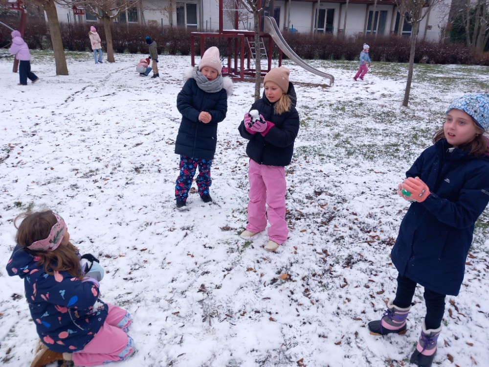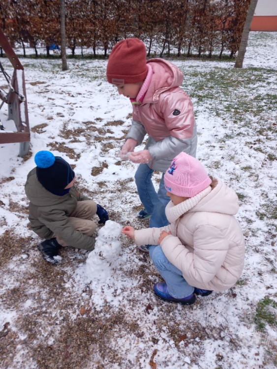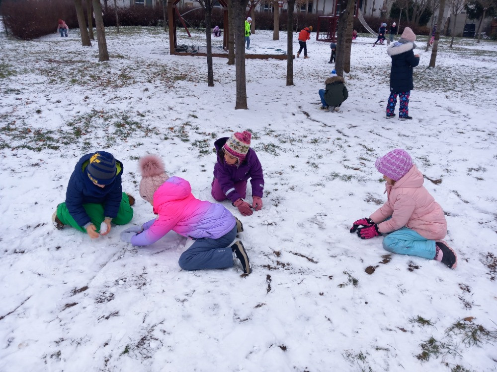 1. 12. 2025 S velkou radostí a očekáváním jsme přivítali první sníh. Dva dny předtím, než ho trochu napadlo, jsme chytali první vločky do dlaní u Pasivního bytového domu, pak přišla o něco větší nadílka a my si tak mohli postavit malé sněhuláky. 1 / 12 / 2025 BJ