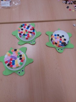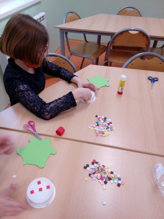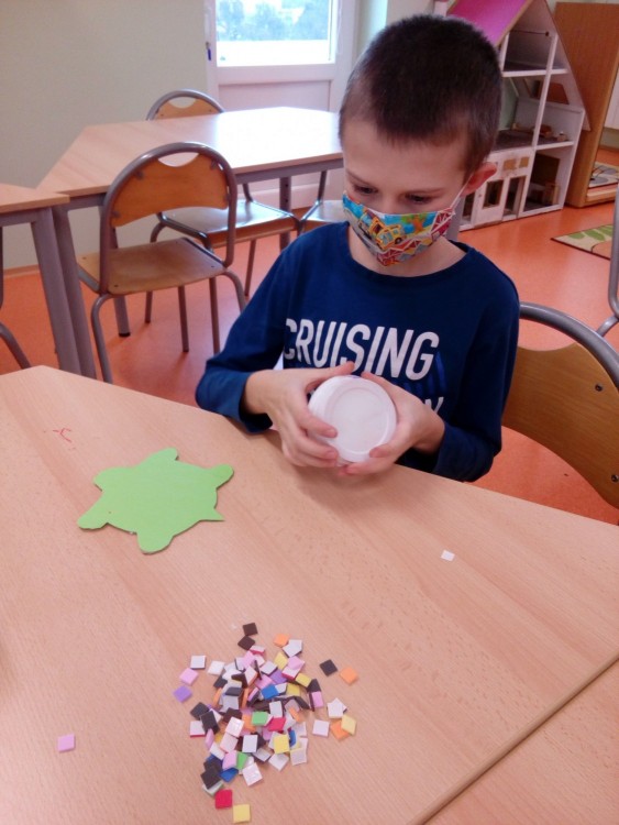 29. 1. 2021 2.oddělení žáci z 2.B tvoří rádi zvířátka. Na výrobu želvy nám stačil prázdný kelímek, karton, barevný papír, lepidlo a tavná pistole. Krunýř zdobíme dle vlastní návrhů. 7 / 2 / 2021 KV