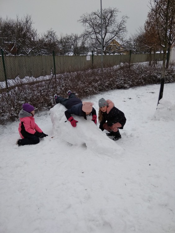 16. 12. 2022 ŠD 1.,2.,4. oddělení Sníh udělal dětem velkou radost - koulovaná, sněhuláci a další sněhové výtvory. 16 / 12 / 2022 KV