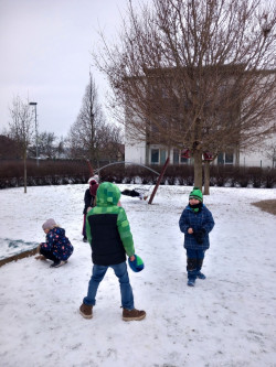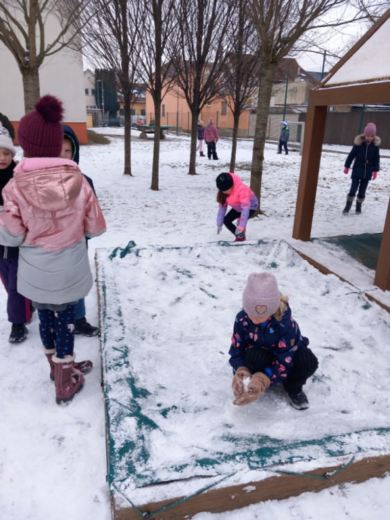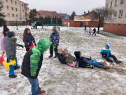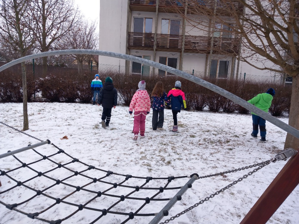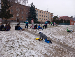 Únor bílý, pole sílí. A my můžeme posilovat i při zimních venkovních aktivitách. Třeba při takové jízdě na lopatách nebo-li kluzácích. Svezli jsme se mezi bytovými domy nebo na kopečku u "Fina". Také jsme se koulovali a stavěli malé sněhuláky.