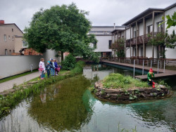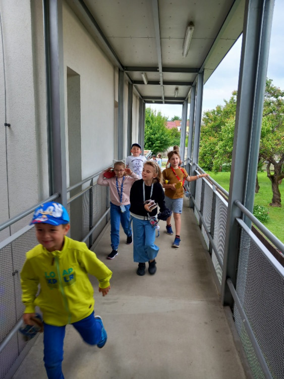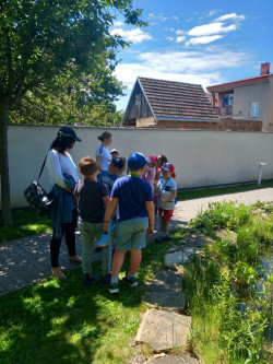 V rámci poobědové relaxace rádi chodíme okolo jezírka u Pasivního bytového domu pro seniory (PBDS). Minulý pátek tam na nás čekalo překvapení, jezírko hlídal vodník! A v trávě na ostrůvku seděla divoká kachna na vejcích. Proto se snažíme být potichu a kachnu nerušit. Tentokrát jsme si zkusili jít na molo, samozřejmě s největší opatrností, abychom nespadli do vody. Od pondělí máme v našem oddělení na praxi studentku pedagogické školy Simonu, která ještě vloni navštěvovala naši základní školu. V úterý jsme si šli číst k PBDS další kapitolu z knihy Krysáci. U jezírka nás potkala babička Jiřinka, která nám v zimě z knihy předčítala a od ní jsme se dozvěděli, že vodník se jmenuje Vojta. A proč Vojta? Protože dědeček, který vodníka pro PBDS pořídil a zároveň tady žije, se jmenuje Vojtěch. A pan Vojtěch je dědečkem studentky Simony :-)