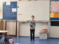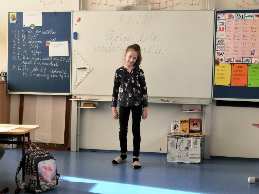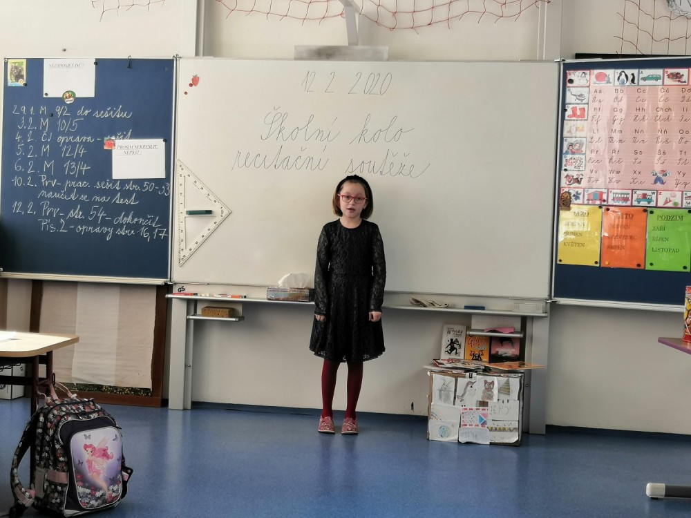 Ve středu 12.2. proběhlo na 1. stupni školní kolo recitační soutěže. Porota z řad vyučujících vybírala ze soutěžících rozdělených do 3 kategorií. Ve velké konkurenci svých spolužáků se nakonec umístili tito recitátoři: