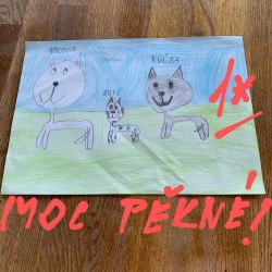 Tak už máme za sebou první týden domácí výuky. Protože jsme teprve v první třídě, musí nám s přípravou pomáhat maminky, tatínci, babičky, dědečci,..., za což jim patří obrovský dík. Ujali se toho velmi zodpovědně, děti píší naprosto krasopisně a úkoly plní na 100%! Abychom si domácí učení trochu odlehčili, dostaly děti za úkol namalovat zvířecí rodinu, protože zvířata právě probíráme v prvouce. Musím říct, že při otevření každé další nové zprávy s přílohou s novým dětským obrázkem se mi vloudil úsměv na tvář, proto se chci s vámi o to podělit...