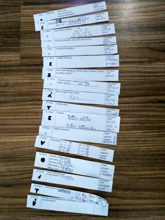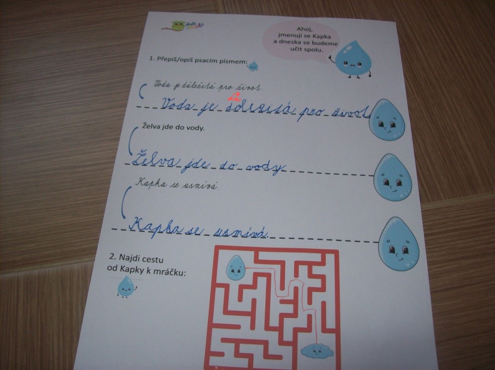 V naší domácí škole se nenudíme. Ke Dni Země jsme zhlédli pohádku O kapce vody a následně vyplnily hravé pracovní listy, ve kterých jsme si prošli např. bludiště nebo vyluštili sudoku. Abychom si nenápadně procvičili čtení, psaní i počítání, pustili jsme se do "domácí pátračky", kde jsme například počítali okna v bytě, ale hledali i další zajímavé věci. Nebo nám rodiče po bytě schovali na různých místech úkoly, které jsme po nalezení nadšeně plnili. Do písanek píšeme moc pěkně - všechny děti mají velkou pochvalu!, jde nám i práce ve Slabikářích či v Matematikách, za což patří obrovské DÍKY rodičům i prarodičům, kteří teď s dětmi doma pracují!