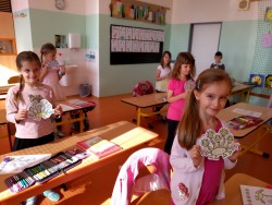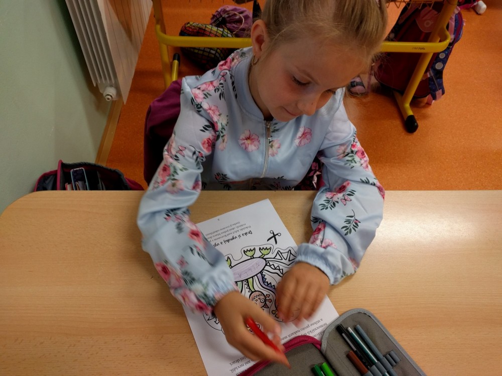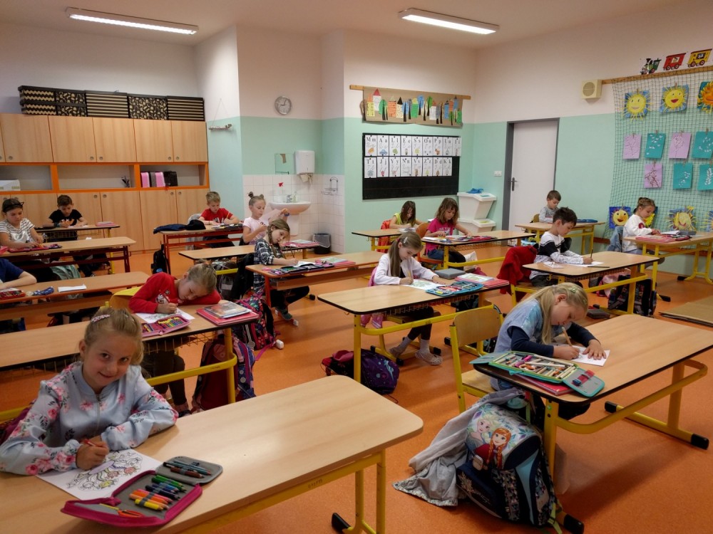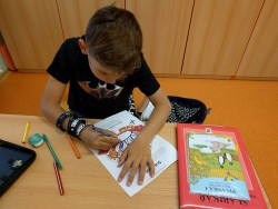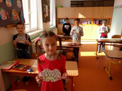Plníme stejné úkoly z českého jazyka,matematiky i prvouky jako naši spolužáci doma, ale stíháme i něco navíc. Celý minulý týden jsme bojovali s drakem Koronem.Připomínali jsme si pravidla, kterými se musíme řídit, abychom nad zlým drakem zvítězili.