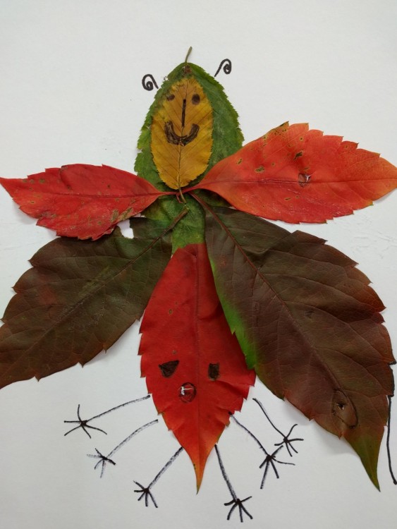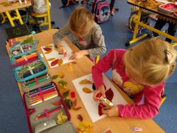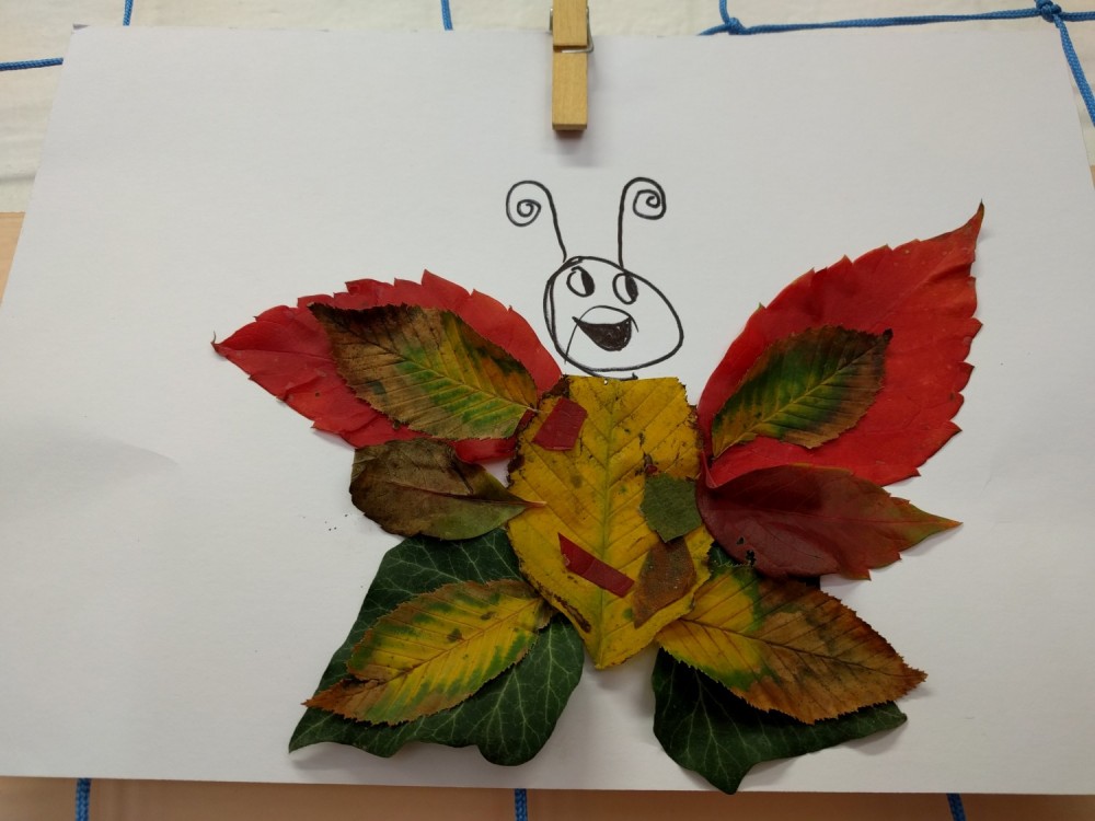 22. 10. 2019 Na podzimní vycházce jsme si nasbírali barevné listy a ve výtvarné výchově z nich vytvářeli zvířátka.Hodně nás to bavilo a obrázky se nám povedly. 22 / 10 / 2019 PK