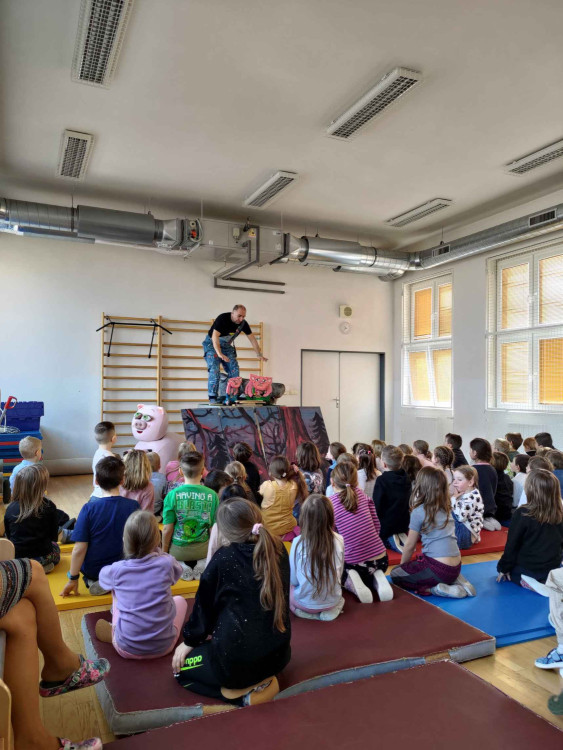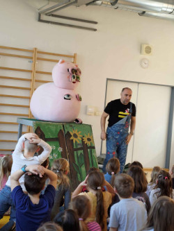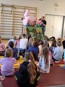 Divadlo Koráb s představením Tři prasátka rozvlnilo dětským smíchem celý sál. Herecké umění jednoho herce potěšilo nejen děti, ale i dospělé. Zpívalo se, tančilo se, odpočívalo, a dokonce se děti na okamžik staly i opravdovými herci.